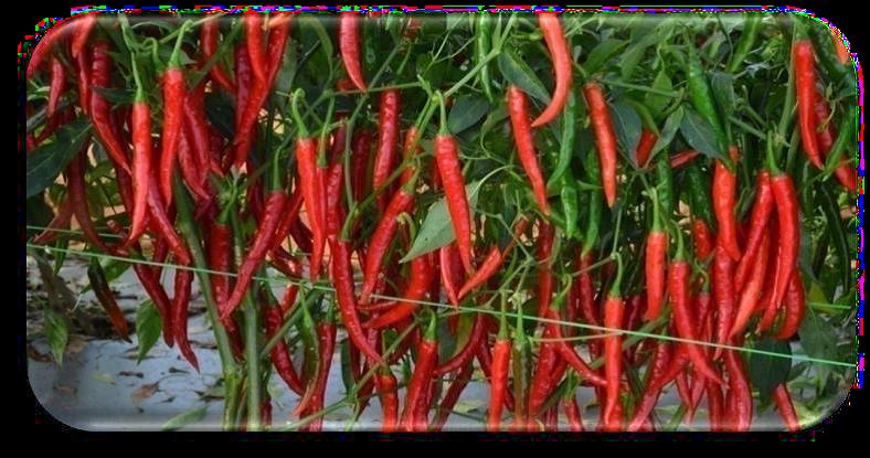High yielding chilli F1 hybrid suitable for green and dry chilli market, plants medium tall & spreading, fruits pendent, 7-8 x 1-1.2 cm, firm, medium pungent, green and turn red on maturity, smooth turn to medium wrinkled on maturity, tolerant to chilli leaf curl virus, yield potential 30-35q dry chilli/ acre, recommended for eastern dry zone of Karnataka