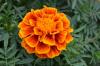 French marigold photo insensitive variety with double coloured flower. Border is orange (RHS colour chart Orange group N-25C) and center is dark red (RHS colour chart red group 44-A). Plants are dwarf with spreading habit and floriferous. Flowering is observed throughout the year.