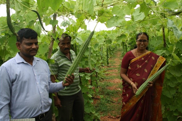 Performance of Ridge gourd Variety, Arka Prasan in Mr. Vasudeva Rao’s field at Kunikere, Hiriyur Tq., Chitradurga Dt., Karnataka