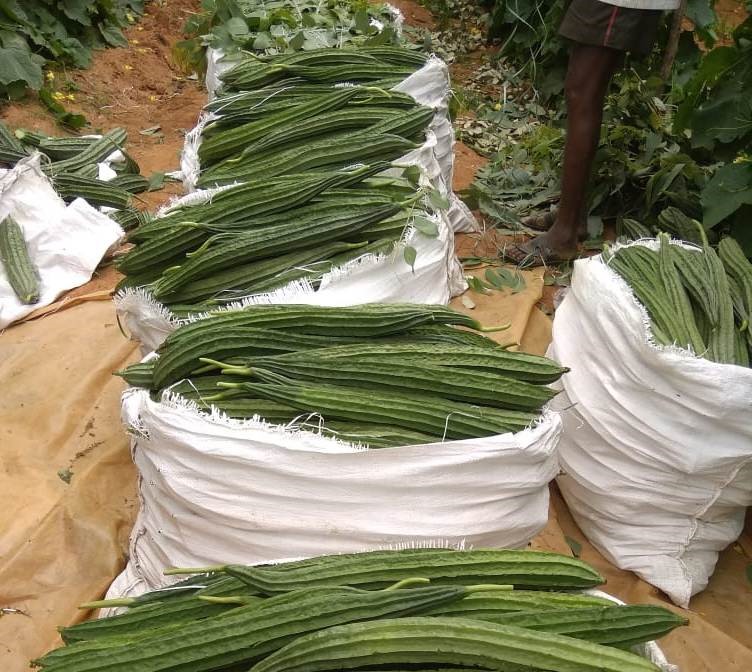 Ridge gourd variety, Arka Prasan is grown in 4 acres of land of Mr. Raghvendra Reddy at Thimmampet village, Garladinne Mandal, Anantaput dist of Andhra Pradesh during July, 2018. He is a regular grower of ridge gourd and of late he felt that the performance of private company cultivars was not good and started searching the internet for a good variety. Then he came across about ICAR-IIHR ridge gourd variety, Arka Prasan and purchased the seeds from us. He is very much satisfied with the earliness (first picking by 35th day), growth and yield performance of the variety. Initially he got about 1.0-1.5 tons yield in the first picking taken at 35 days after sowing and then after he used to get about 3.5-4 tons/picking from 4 acres. He said that the fruits are attractive, long, straight, tender green and preferred very much in the market. He got on an average Rs.15-22/kg of fruits in the Hyderabad and Anantapur markets. So far he has made15 pickings and another 15 more pickings he is expecting with a total yield of about 20-22tons/acre earning about Rs.3.0 lakhs. His expenditure per acre is about Rs.40,000 and his net returns is 2.6 lakhs/acre over a period of 3 months. By seeing the excellent performance, again he is planning to grow Arka Prasan in another 8 acres in the coming season.