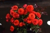 Arka Sinchana is highly floriferours everblooming floribunda rose identified for garden display Flowers are bright red in color (RHS colour chart Red Group-43-A) with flowers produced in bunches. Young leaves are bronze green in colour turning to deep green as the leaves mature. Flowers are small in size (5.4cm), and filled with multiple petals ranging 40-45/flower. On an average it produces 1250-1500 flowers/plant/year.