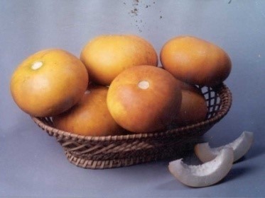 Fruits round with lush green shining skin covered with soft hair when young and tender (60 g). Yield 10 t/ha.