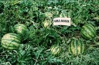 Fruits are oval with light green rind to dark green stripes. Deep crimson flesh with granular texture, pleasant aroma, very sweet, TSS 12-150 brix. Average fruit weight is 6 kg. Seeds small with dark brown specks on the test Triple resistant to powdery mildew, Downey mildew and anthracnose. Yield 60 t/ha.